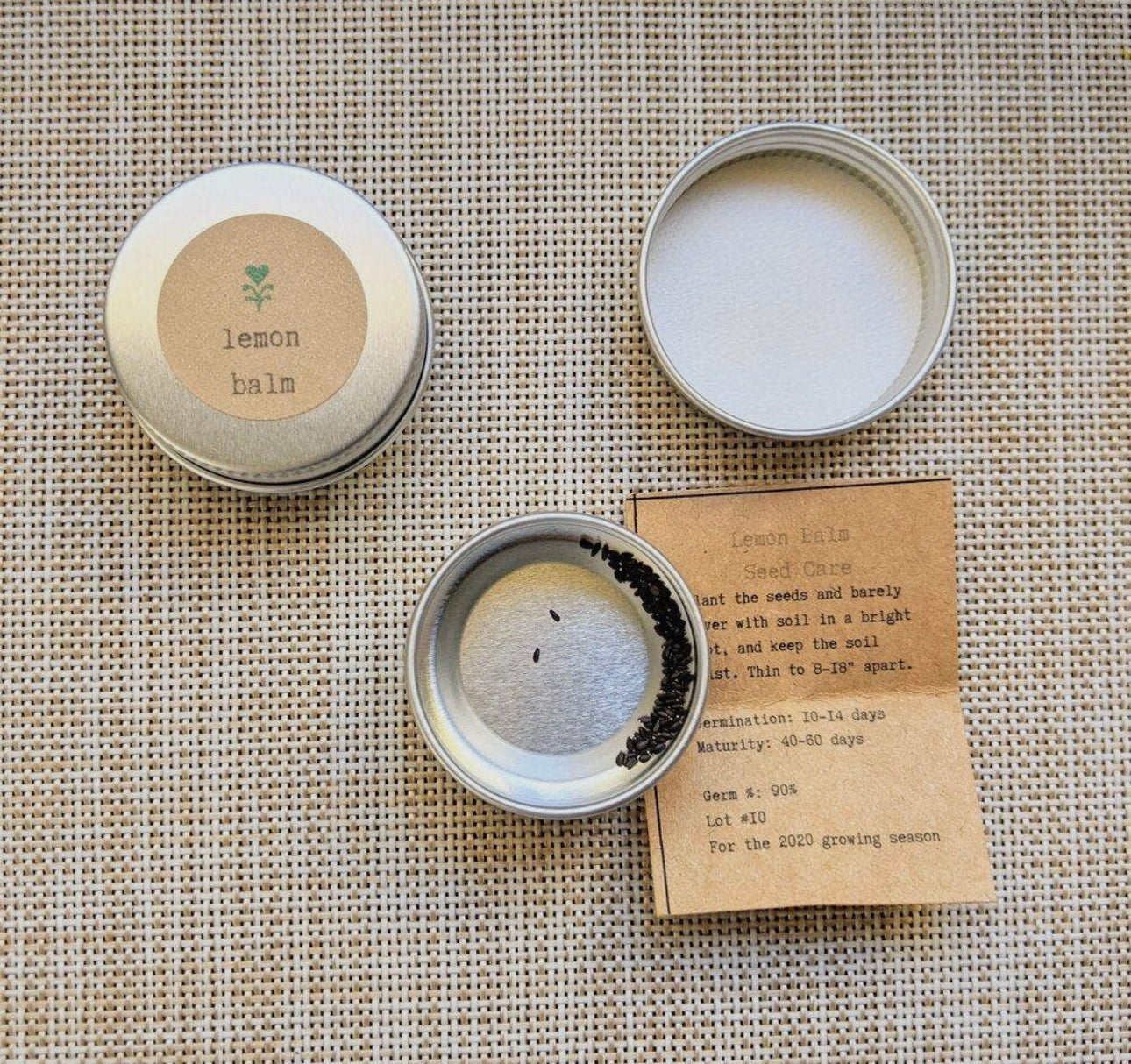 1 tin contains 100 Heirloom non-GMO Lemon Balm Seeds.